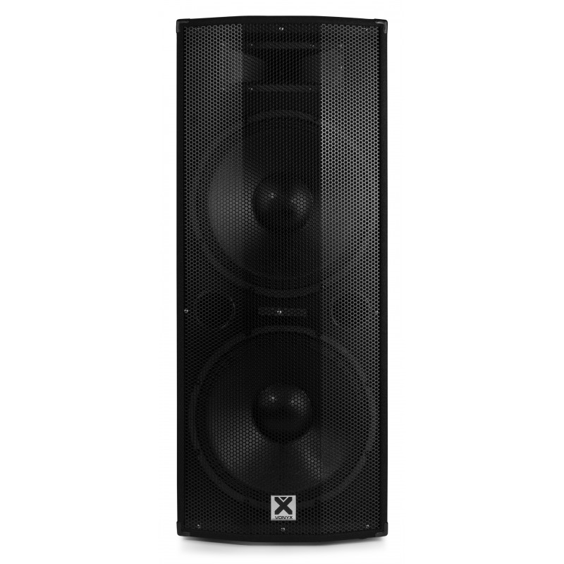 El CVB212 es un altavoz activo de doble woofer con Bluetooth y MP3 y entrada de micrófono en acabado de moqueta