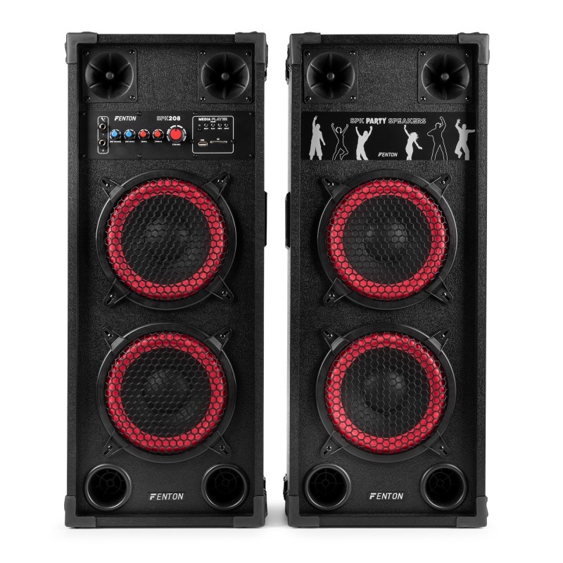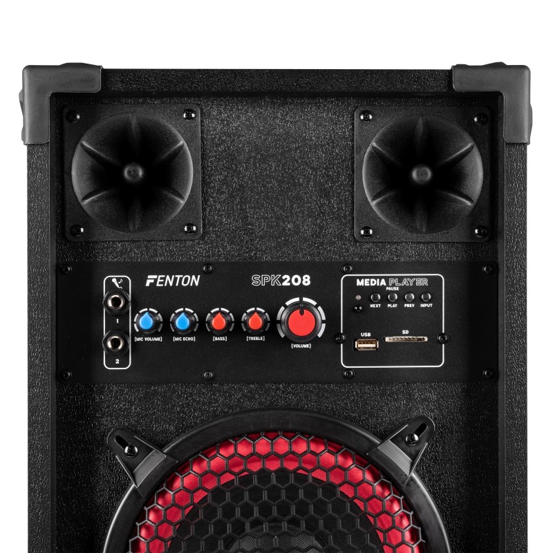 Con conectividad Bluethoot, un reproductor de MP3 incorporado (USB/SD) y dos entradas de micrófono con efecto de eco, estos altavoces son perfectos para pequeñas fiestas y karaoke. Su carcasa robusta y los controles ajustables de graves y agudos proporcionan una experiencia de sonido óptima.