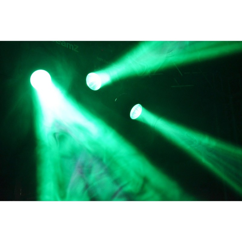 Cada unidad lleva 57 LEDs RGBW para alta salida lumínica y proyectan bellas figuras. También puede funcionar en automático con programas internos pre grabados o al ritmo de música. La barra T encaja en cualquier trípode de 35mm (no suministrado) lo que hace del 3-Some un conjunto de iluminación indispensable en tus eventos.