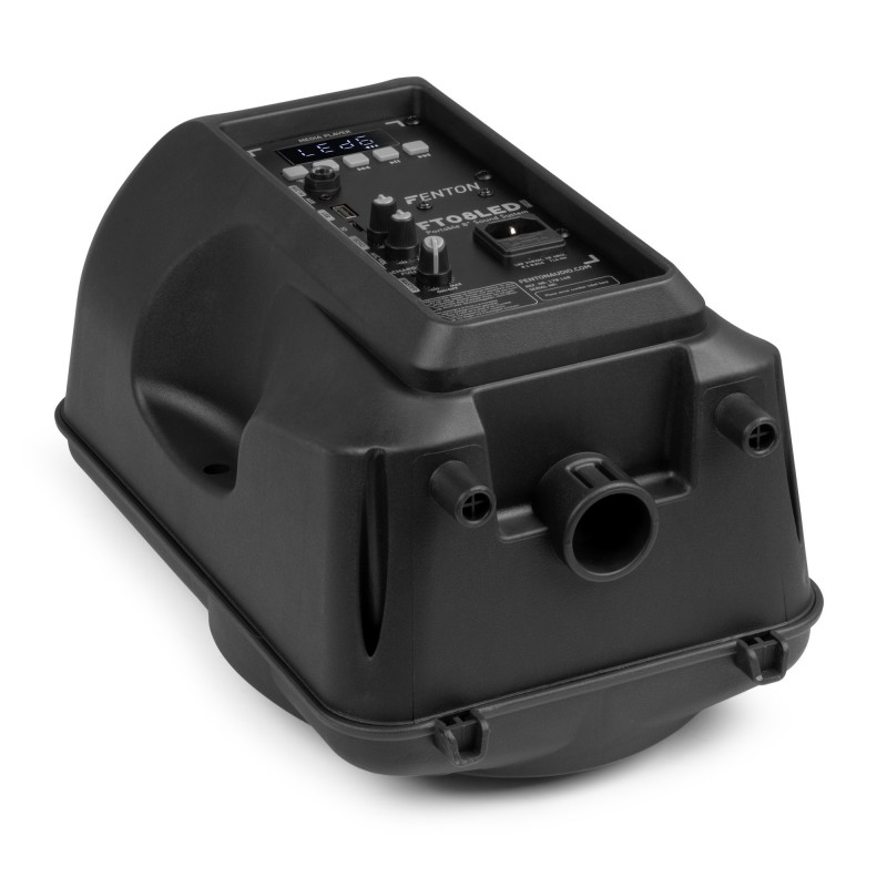 El bafle incorpora un micrófono inalámbrico con volumen independiente y echo, y una entrada Aux para conectar cualquier dispositivo.