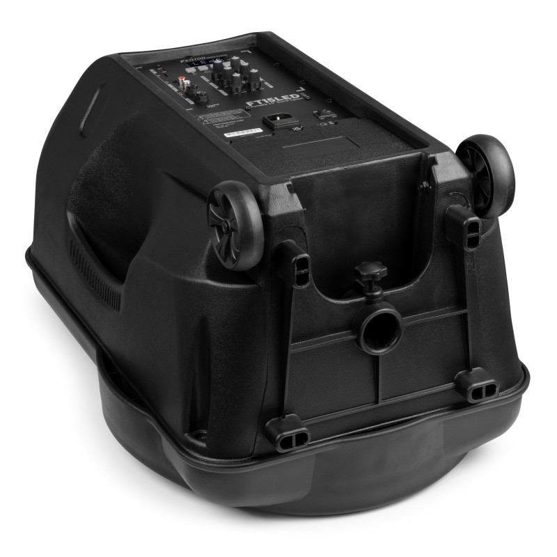 El bafle incorpora un micrófono inalámbrico con volumen independiente y echo, y una entrada Aux para conectar cualquier dispositivo.