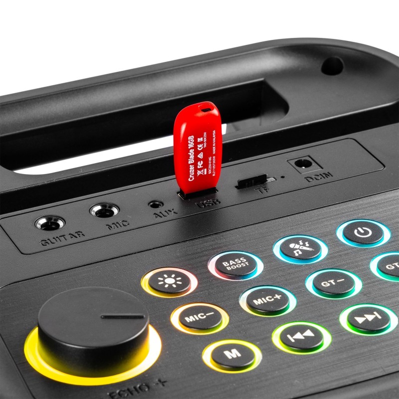 Con un espectáculo de luces sincronizadas en el frente y un panel de control claro en la parte superior, sonido estéreo y una batería incorporada, este es un altavoz que se ve genial y suena aún mejor. Core Party Speaker, que se caracteriza por la avanzada tecnología inalámbrica BT, te brindará música de calidad y garantiza una señal nítida. Emparejar tu teléfono u otro dispositivo habilitado para BT es súper fácil.