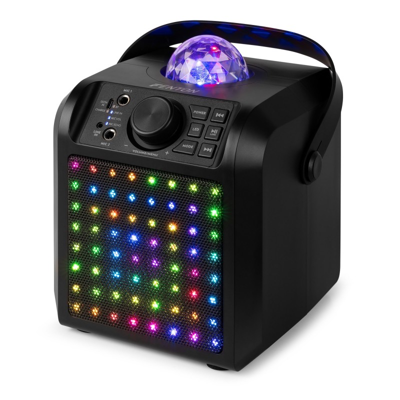 Este altavoz compacto y elegante tiene un buen sonido, perfecto para cualquier fiesta en casa. Con la conectividad BT, puedes transmitir fácilmente tus canciones favoritas desde cualquier dispositivo. Ligero y portátil, este altavoz es ideal para sesiones de karaoke divertidas.