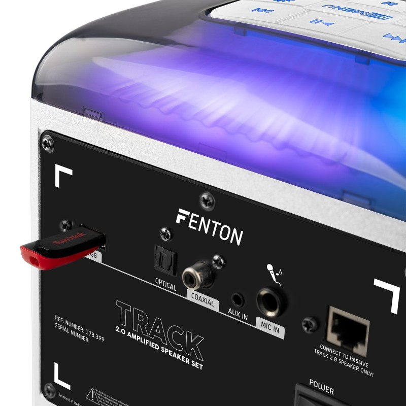 Cada altavoz cuenta con un controlador de graves de 5.25" y un tweeter de cono de 1". El puerto bass reflex frontal mejora las frecuencias bajas, añadiendo profundidad y potencia extra a los graves. Conectividad inalámbrica sin interrupciones con la última tecnología de transmisión BT. Además, las entradas ópticas y coaxiales garantizan una calidad de audio de alta fidelidad para toda tu música. Este elegante conjunto de altavoces cuenta con un espectáculo de luces incorporado en la parte superior, un reproductor multimedia USB, un micrófono y control remoto inalámbrico.