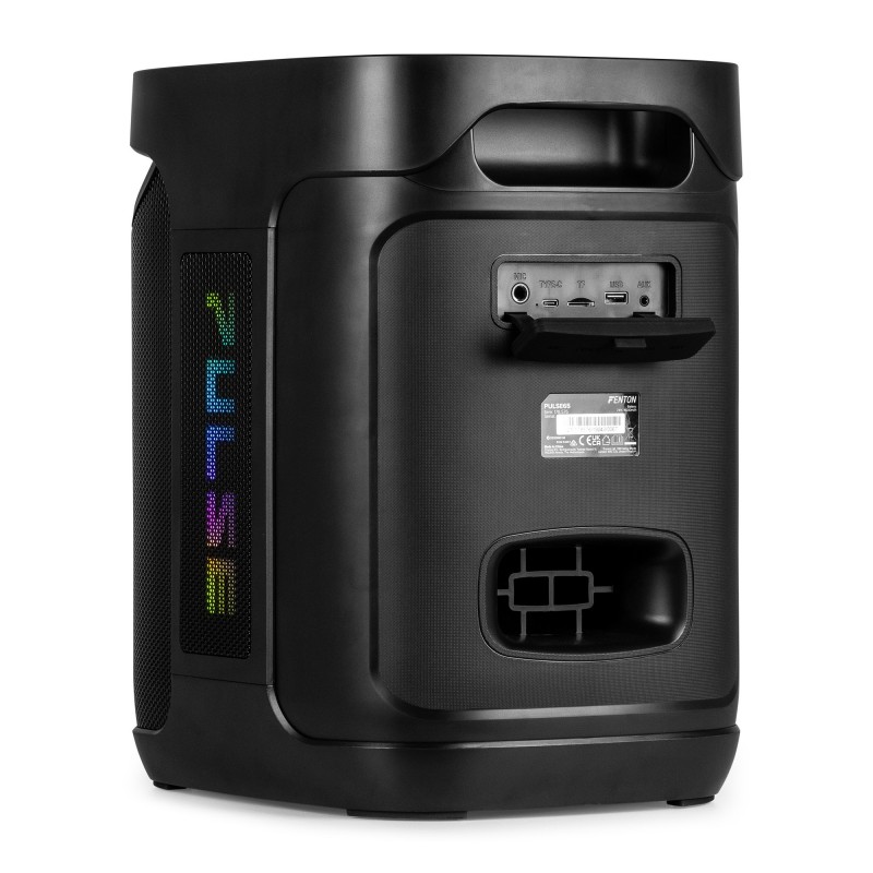 La serie Pulse Party Speaker presenta un espectáculo de luces sincronizadas en el frontal y en ambos lados. Gracias a la batería recargable incorporada, al micrófono inalámbrico y a numerosas opciones de entrada: tarjeta USB y micro SD, puedes cantar fácilmente todas tus canciones favoritas. Totalmente portátiles, también es posible conectar 2 altavoces Pulse de forma inalámbrica para crear un sonido estéreo más potente. La serie Pulse Party Speaker es resistente al agua IPX4.