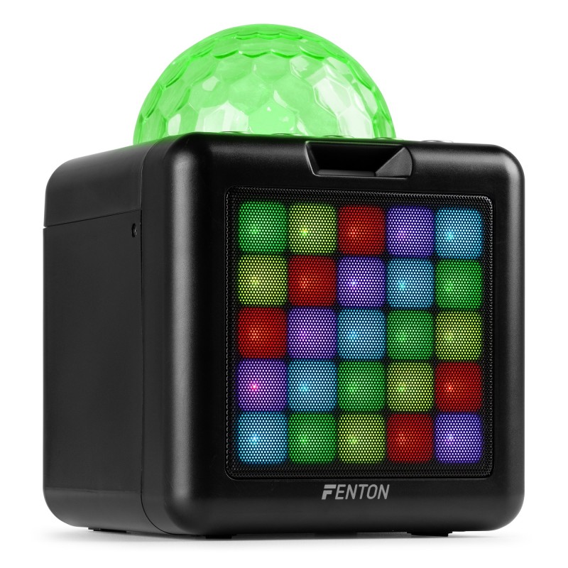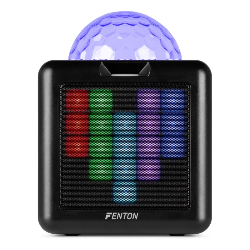 Transmite audio de forma inalámbrica a través de Bluetooth y elige entre cuatro efectos de cambio de voz. La bola de discoteca LED RGB en la parte superior y las luces LED incorporadas en el frente giran y parpadean al ritmo, transformando el entorno en un fascinante espectáculo de luces en paredes y techos. Los dos micrófonos y la batería recargable de litio garantizan una diversión ininterrumpida, mientras que las dos entradas Aux brindan opciones de conexión adicionales para fuentes de sonido externas.