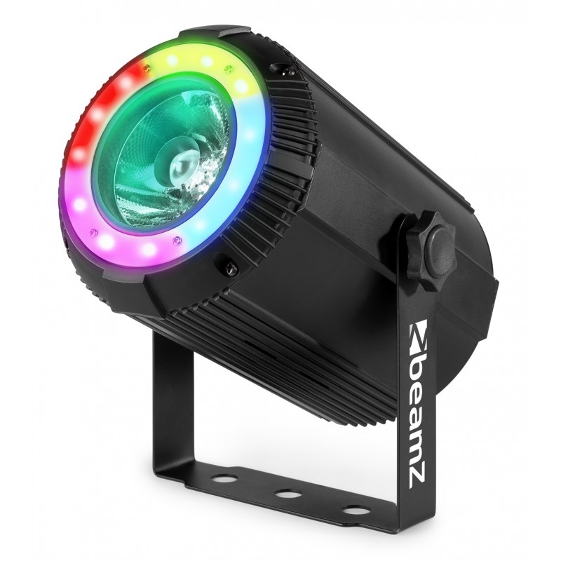 El PS40 es un foco Par spot potente y compacto con una abertura de 2° con un LED de alta potencia 40W 4-en-1 y un anillo de LEDs