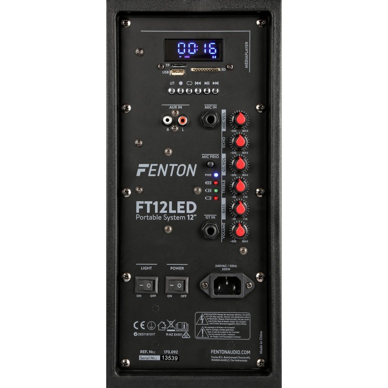 Bafle activo completo de 12" con batería, entradas USB/SD y conectividad Bluetooth